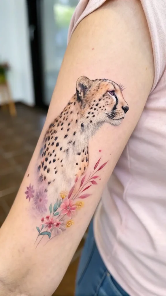 One unique way to showcase your love for cheetahs is through a watercolor cheetah arm tattoo. This style combines the beauty of watercolor art with the symbolism of the cheetah.
