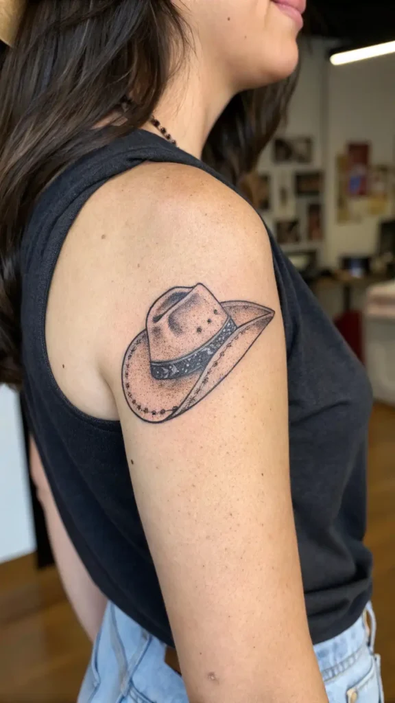 You’re considering a cowboy hat tattoo, and you have fair skin – a delicate canvas. The impact on fair skin is notable: ink visibility is more pronounced, so choose bold lines and darker shades for a striking effect.