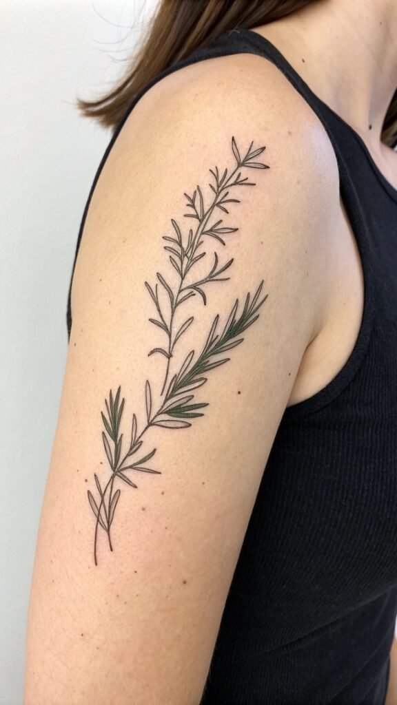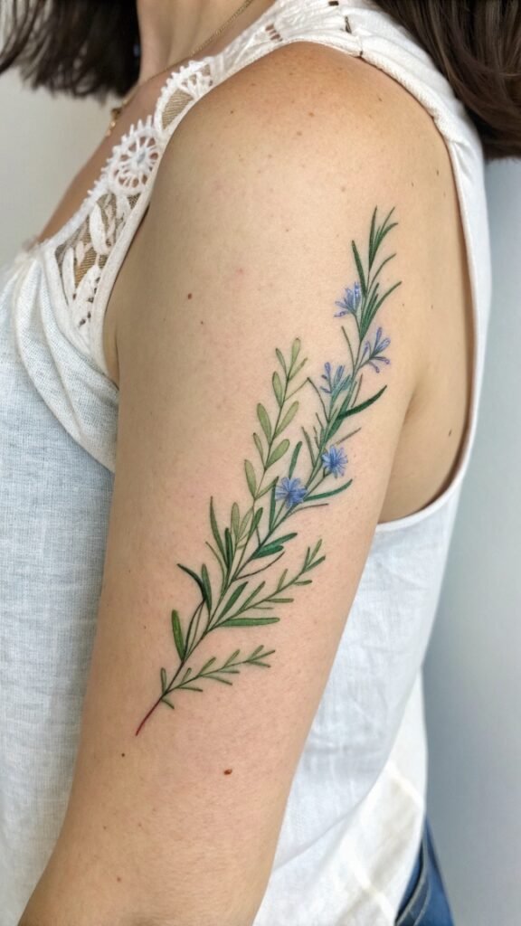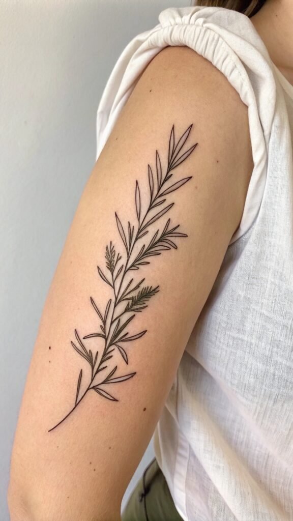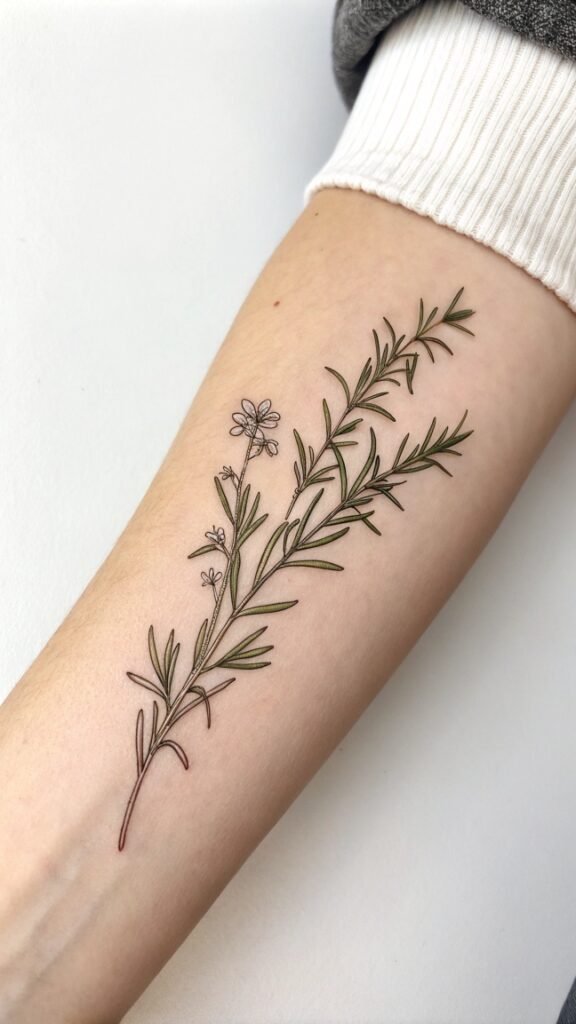 A tiny rosemary branch tattoo can be placed almost anywhere on the body, from the wrist to the ankle, making it a versatile option for those who want a discreet yet meaningful design.